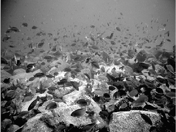 図3 海藻の芽を食べるメジナの群れ
