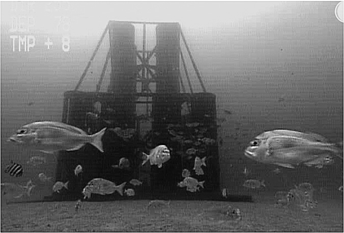 2004~2008年度の5カ年間にわたり、島根県隠岐の島町の事業として、隠岐の島町大久地区の水深:80~100mに8.5型柱状礁、12.5型柱状魚礁あわせて50基、13、820空m3を設置した。この魚礁の対象魚はアジ類、メダイ、ブリ類、メバルで期待通りの蝟集状況をみている(図9)。