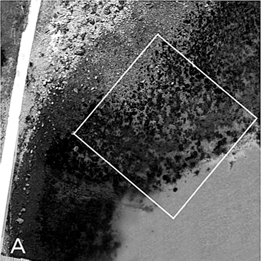 体は堆砂があるため、食害から免れ生育している。写真B は水深が深い(水温が低い?)ためにアイゴに食べ